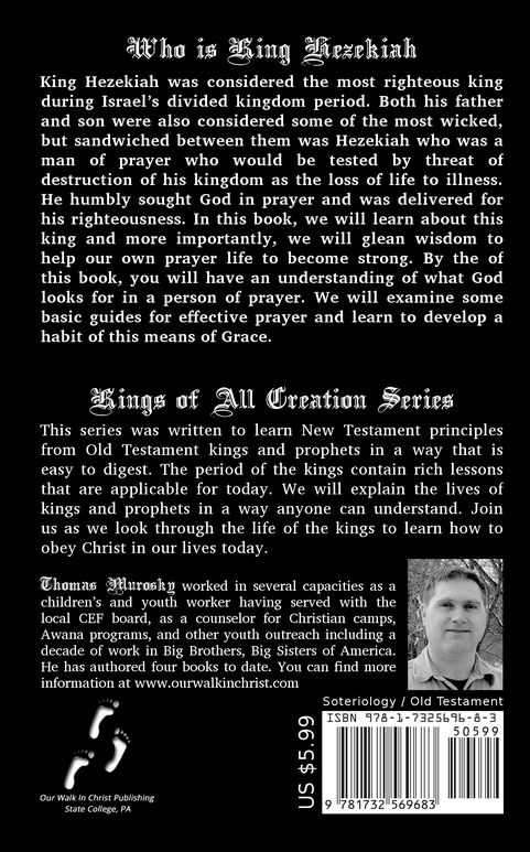 King Hezekiah was considered the most righteous king during Israel’s divided kingdom period. Both his father and son were also considered among the most wicked of kings, but sandwiched between them was Hezekiah, a man of prayer who would be tested by threat of destruction and the loss of life from illness. He humbly sought God in prayer and was delivered for his righteousness. In this book, we will learn about this king and more importantly, we will glean wisdom to help our own prayer life become strong. By the of this book, you will have an understanding of what God looks for in a person of prayer. We will examine some basic guidelines for effective prayer and learn to develop a habit of bringing our requests before the Lord.
